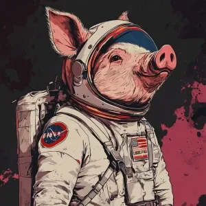 «Cute cartoon pig in vintage white spacesuit and NASA style helme...»