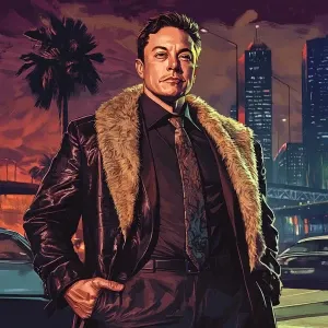 «Elon Musk in GTA art style — — in the style of a Grand Theft Au...»