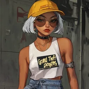 «young, rebellious gta-style character. The character should have...»