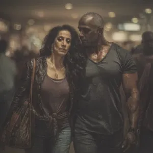 «Realism art.a indian criminal sweaty muscular beefy man ,walkin...»