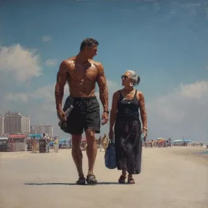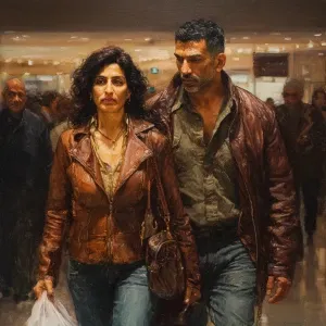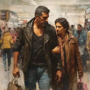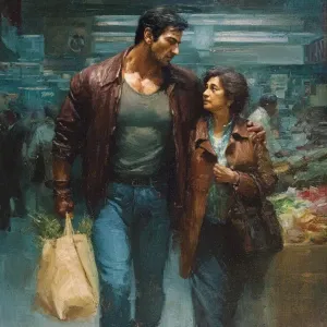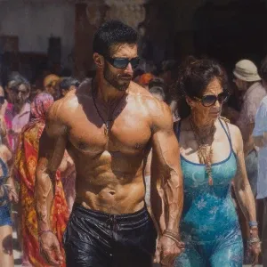 «hyperrealism painting,a muscular beefy kashmiri son in law walki...»
