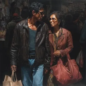 «hyperrealism painting.a indian criminal sweaty man ,walking wit...»