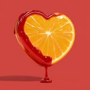 «Generate me an image of a orange that shaped like a heart and it...»