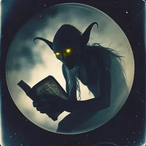 «In the depths of a cosmic abyss, a shadowy goblin lurks in a pin...»