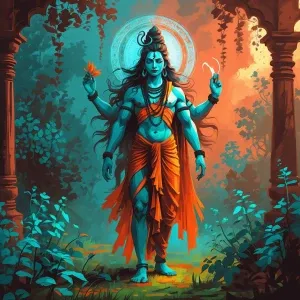 «dynamic digital sketch lord shiva in warm terracotta and cool te...»
