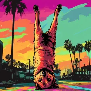 «MEME DOGE in GTA art style — Do a hand stand. — in the style of...»