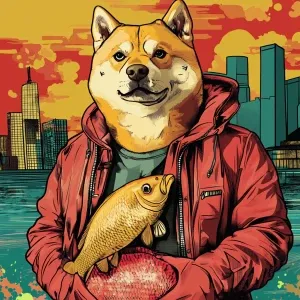 «MEME DOGE in GTA art style — With fish — in the style of a Grand...»