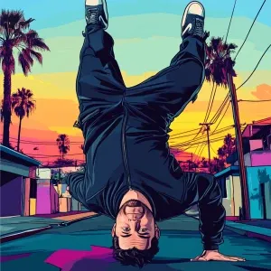 «Elon Musk in GTA art style — do a handstand — in the style of a...»
