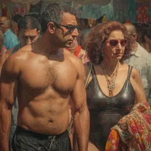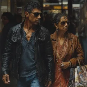 «Hyperrealism image.a muscular beefy tattoed gujarati sweaty man...»