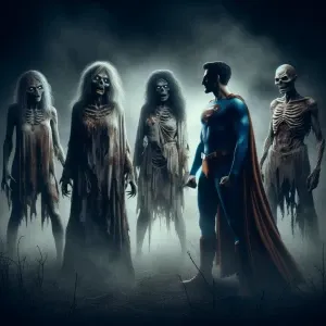 «🧟♀️🧟♀️🧟♀️🧟♀️🦸♂️,errie ghostly haunting background»