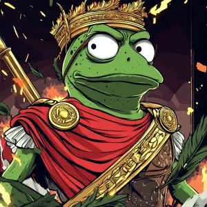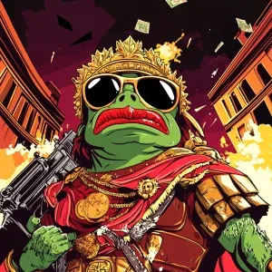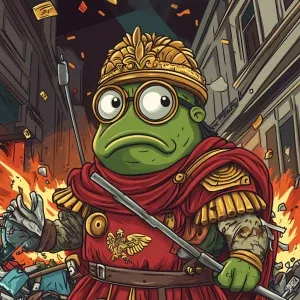 «Pepe the Frog in carton style dressed as an ancient Roman empero...»