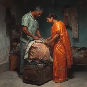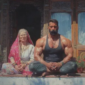«Hyoerrealism,sharp painting.a 54-year-old Gujarati aunty who wor...»