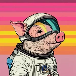 «Cute cartoon pig in vintage white spacesuit and NASA style helme...»