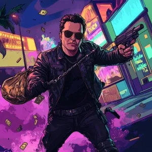 «Elon Musk in GTA art style - wearing a torn tactical suit, holdi...»
