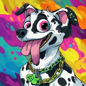 «A cartoon-style anthropomorphic dog character with a white coat...»