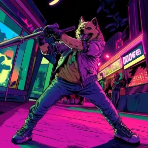 «MEME DOGE in GTA art style - mid-swing with a large metal bat, c...»