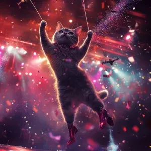 «A pop star cat inspired by Taylor Swift, sprinting off stage in...»