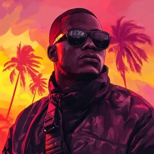 «pale man with tired red eyes and hoodie, slightly hunched, expre...»