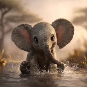 «A young African elephant calf named Ember joyfully sitting in a...»