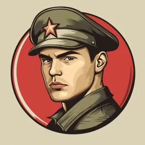 «young russian soldier, logo in carton style»