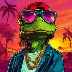 «PEPE meme in a humorous digital illustration in the style of a G...»