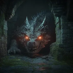«A detailed, intimidating dragon with glowing eyes and sharp scal...»