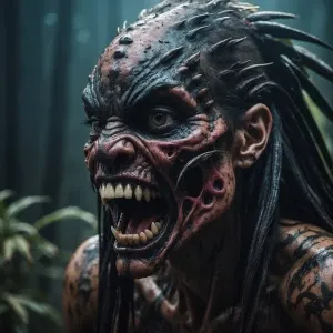 «Double exposure horror crying entity, in the style of Yautja's...»
