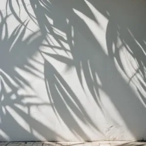 «48. Coconut leaf shadow abstract pattern on white wall, minimal...»
