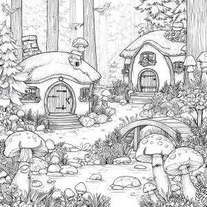 «Highly detailed black-and-white line art of a whimsical fairy ga...»