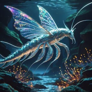 «In the depths of an otherworldly ocean, a silvery luxurious inse...»