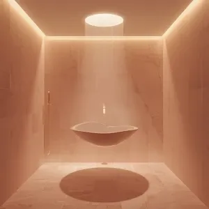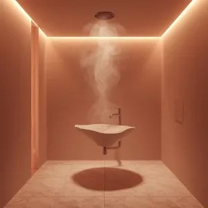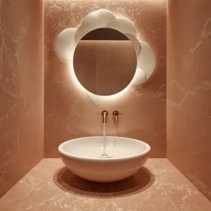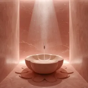 «Create an image of a luxurious bathroom titled "Petal Sink Room,...»