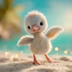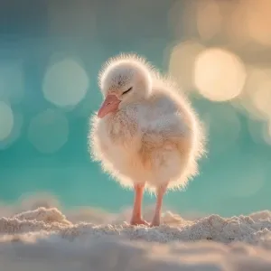 «A newborn baby flamingo chick named Flan, soft pale-gray down wi...»