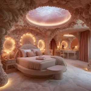 «Step into the Lagoon Shell Room of Guest Room 3, a luxurious ret...»