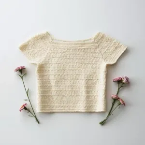 «Create a flat lay showcasing a delicately hand-crocheted top wit...»