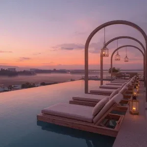 «Title: "The Elysian Skydeck at Dawn: A Cinematic Oasis"