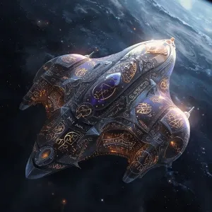 «A shimmering cosmic ark, crafted from swirling stardust and astr...»