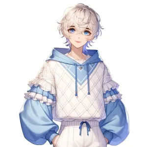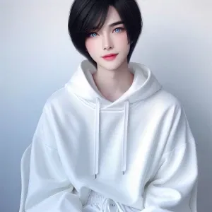 «A charming and alluring femboy with striking white hair and capt...»