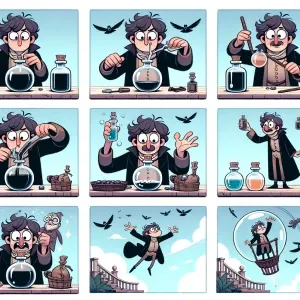 «make a video of a cartoonish guy trying a drink which is like ro...»