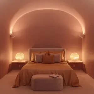 «Guest Room 5 – Twilight Blush Room: A serene dreamscape painted...»