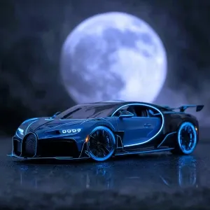 «Neon blue glowing painted Bugatti w16 mistral, glows in the dark...»