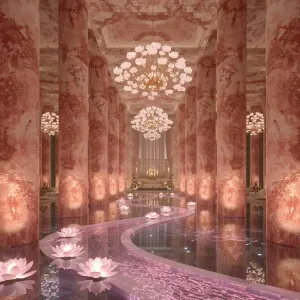 «Stand in The Bloom Gate's Grand Entry Hall, where majestic pink...»