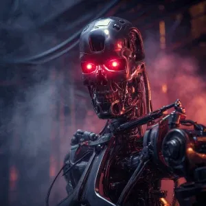 «Tu pacc as a T-800 Terminator endoskeleton, polished chrome hype...»