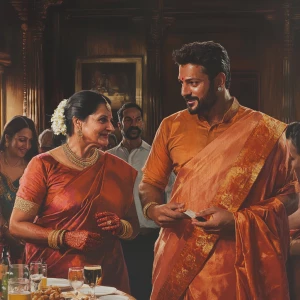 «A divine, vibrant digital painting of Lord Krishna and Radha in...»