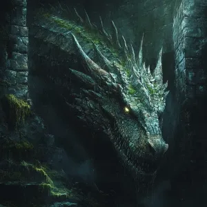 «A detailed, intimidating dragon with glowing eyes and sharp scal...»