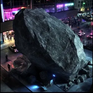 «Create an image of a large, rugged boulder with a rough, uneven...»