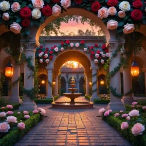 «Rose Arch Entrance Courtyard: A grand courtyard unfolds in a sym...»