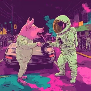 «Elon Musk in GTA art style — Holding moon pig — in the style of...»