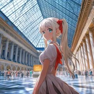 «anime girl in Louvre»