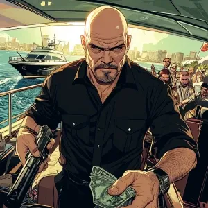 «MEME DOGE in GTA art style — nothing — in the style of a Grand T...»