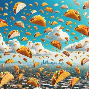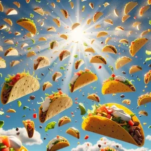 «Imagine a surreal scene where a multitude of tacos cascade whims...»